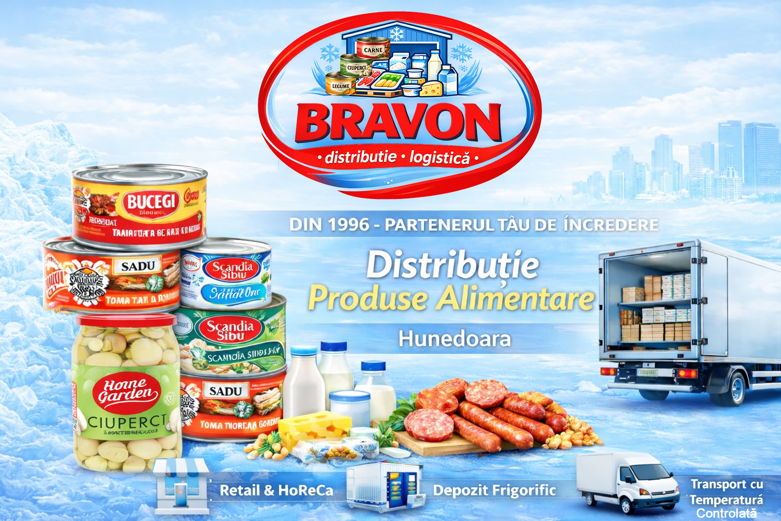 BRAVON SRL este o companie cu tradiție, activând încă din anul 1996 în domeniul distribuției de produse alimentare. De-a lungul anilor, ne-am consolidat poziția pe piață prin seriozitate, promptitudine și calitatea serviciilor oferite.